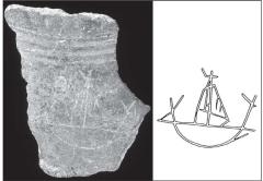 Ancient Tamil/ Tissamaharama Potsherd with ship graffito - layer of 1st century BC. (H. J. Weisshaar - trench 1G, 23/27, layer 18.jpg