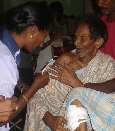 A tsunami victim being treated at a quickly established health camp..jpg