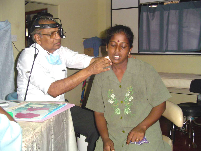 Dr Robert Benjamin, an ENT surgeon from New Zealand examining a patient in Ponnambalam Memorial Hospital..jpg