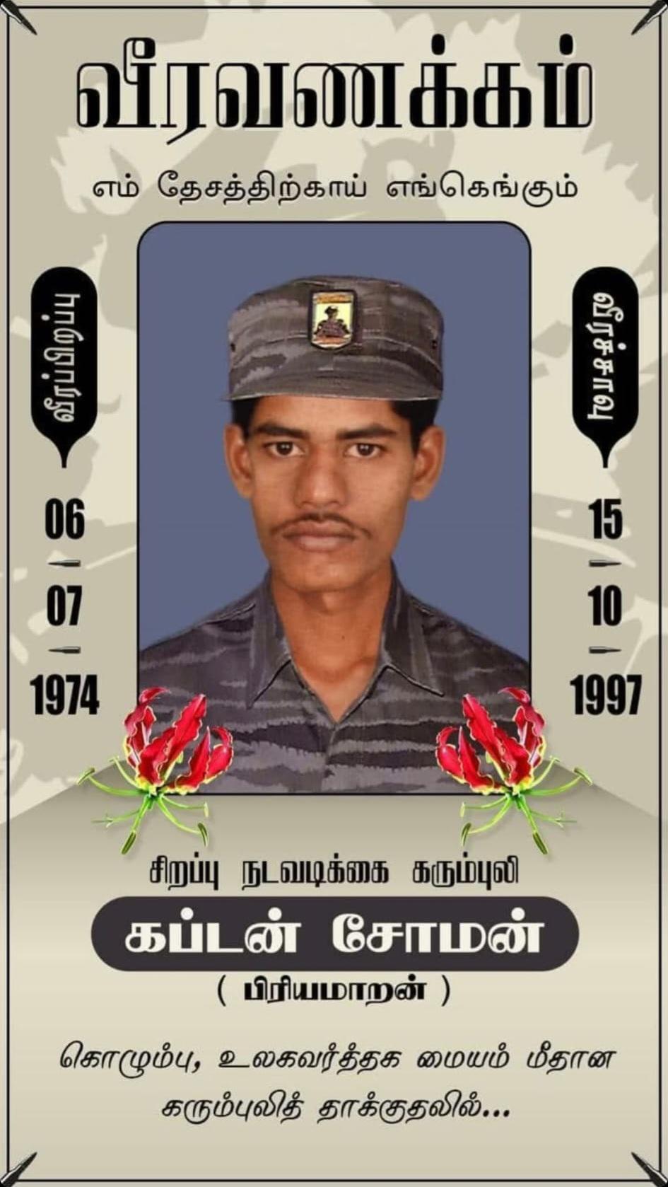 Undercover Black Tiger Captain Soman alias Piriyamaran. One of the 5 Undercover Black Tigers who were KIA during the bombing of Colombo World Trade Center of Sri Lanka (4).jpeg Share https://yarl.com/forum3/gallery/image/34431-undercover-black-tiger-captain-soman-alias-piriyamaran-one-of-the-5-undercover-black-tigers-who-were-kia-during-the-bombing-of-colombo-world-trade-center-of-sri-lanka-4jpeg/ More sharing options... Followers