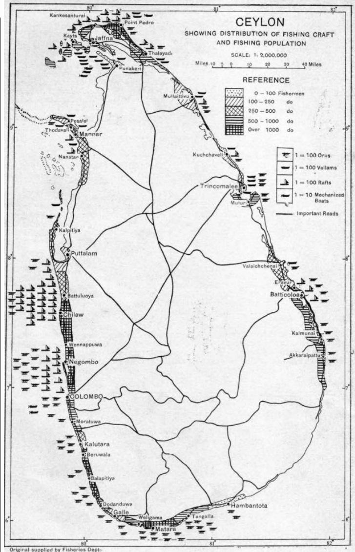 Distribution of different fishing craft in 1958 - Source. Fisheries Department | From THE ORU OF SRI LANKA: A single outrigger craft of the northern Indian Ocean - Lt. Cmdr. Somasiri Devendra, 1990 Share https://yarl.com/forum3/gallery/image/35923-distribution-of-different-fishing-craft-in-1958-source-fisheries-department-from-the-oru-of-sri-lanka-a-single-outrigger-craft-of-the-northern-indian-ocean-lt-cmdr-somasiri-devendra-1990/ More sharing options... Followers