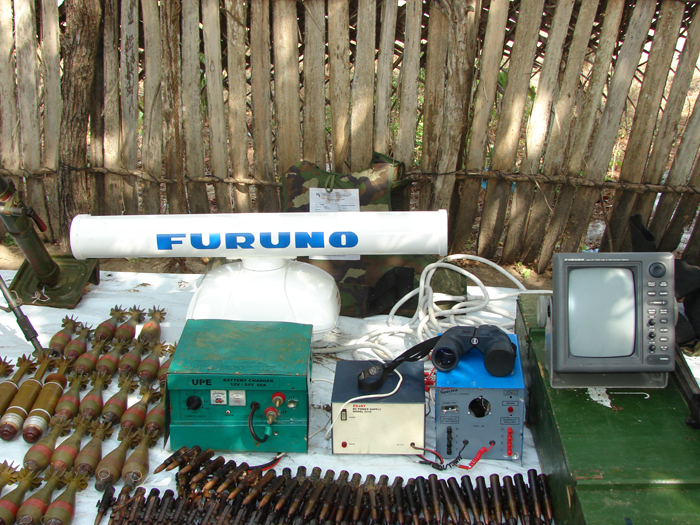 11_06_08_mnr_23 one radar Sea cmd equipment, two-hundred-and-three 81 mm shells, sixty-five 60 mm mortar shells, four RPG propellers, six RPG shells, three kit-bags, 1,195 50 caliber rounds, 5,870 T-56 rounds and several others.jpg