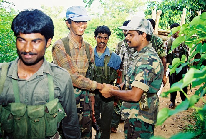 Balraj shaking hands with fighters before commencing Op. Unceasing Waves -III on the SLA in Oddisuddaan.jpg