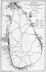 Distribution of different fishing craft in 1958 - Source. Fisheries Department | From THE ORU OF SRI LANKA: A single outrigger craft of the northern Indian Ocean - Lt. Cmdr. Somasiri Devendra, 1990