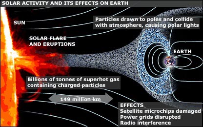 சூரியனின் இந்த கதிர்வீச்சுத் தாக்குதல் ஒரு புயல் போல பூமியைத் தாக்கலாம் என்கிறார்கள் விஞ்ஞானிகள். அப்படித் தாக்கும்போது அதனுடன் சேர்ந்து உருவாகும் மின்காந்த அலைகளின் தாக்குதல்கள் பூமியின், இரண்டு துருவங்களுக்கு ஊடாக பூமியின் உள்நுழைந்து, பூமியில் இருக்கும் அனைத்துவிதமான மின்னியல் சாதனங்களையும் தொழிற்பட முடியாமல் செய்துவிடும். அத்துடன் பூமி நினைக்க முடியாத அளவு வெப்பமாகி எல்லாமே அழியும் நிலைக்கு வந்துவிடும். இதன் மூலம் நாம் எப்படி அழிவோம் என்ற கொடுமைகளைப் பற்றிப் பேசுவதைத் தவிர்த்துவிடலாம். ஆனால், இந்த சூரியக் கதிர்த் தாக்கத்தால் பூமி மொத்தமாக அழிவைச் சந்திக்கும். இந்த சூரியத் தாக்குதல் 2012 இல் நடப்பதற்கு நிறையச் சாத்தியங்கள் உண்டு என்பதே பலரின் அனுமானமாக இப்போது இருக்கிறது.