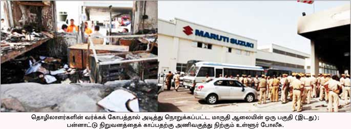 பன்னாட்டு மூலதனத்தைக் காப்பாற்றுவதற்காக சொந்த நாட்டு மக்களுக்குள்ளேயே மோதலைத் தூண்டிவிடும் சதிகளை மாநில அரசும் போலீசும் ஓட்டுப் பொறுக்கிகளும் இணைந்து அரங்கேற்றுகிறார்கள். எட்டப்பனும் தொண்டமானும் கூடிப்பெற்ற கைக்கூலியான நரேந்திர மோடியோ ஜப்பானுக்கே சென்று சுசுகி கார்ப்பரேசனின் தலைவர் ஒசுமா சுசுகியின் காலை நக்கி, குஜராத்துக்கு அழைக்கிறார்.