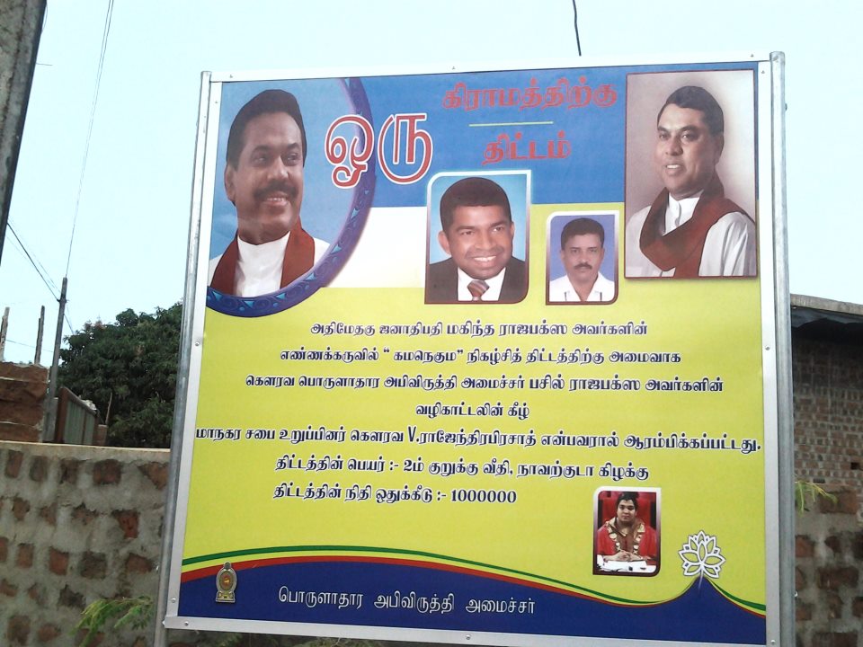 வீதிபோடும் ஒப்பந்தக்களுக்கான ஒப்பந்தகாரர்களை இவரே தெரிவு செய்வார். வீதி போட வழங்கப்படும் நிதியொதுக்கீட்டிலிருந்து ஒப்பந்தகாரரிடமிருந்து 10சதவிகிதத்தை கொள்ளையாக பெற்றுக்கொண்டே வேலையை ஆரம்பிக்க அனுமதிப்பார். ஒரு வீதிக்காக அரசு ஒதுக்குவது 10லட்சமாயின் அதிலிருந்து ஒரு லட்சத்தை தனக்கு வாங்கிவிடுவார். 4லட்சம் ஒப்பந்தகாரருக்கு போக மீதி 5லட்சத்தில் தான் வீதி போடப்படும். வீதியின் விதி ராயேந்திரபிரசாத்தின் (கலிங்கன்) பணப்பையையே நிறைக்கும். இது மட்டுமன்றி ஊரில் நடக்கும் இதர பொது விடயங்களிலும் தனக்கான பங்கினை சுருட்டிய பின்னரேயே ஒரு பங்கு ஊருக்கு வழங்கப்படும்.