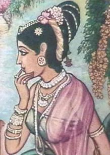 "ஏழுலகத்துக்கும் ராணி எனத் தகும் கம்பீரத் தோற்றமுடைய பெண்மணி. செந்தாமரை மலரின் கம்பீர சௌந்தரியம் உடையவள். பூரண சந்திரன்;ஆடும் மயில்; இந்திராணி; வேகவாஹினியான கங்காநதி;"