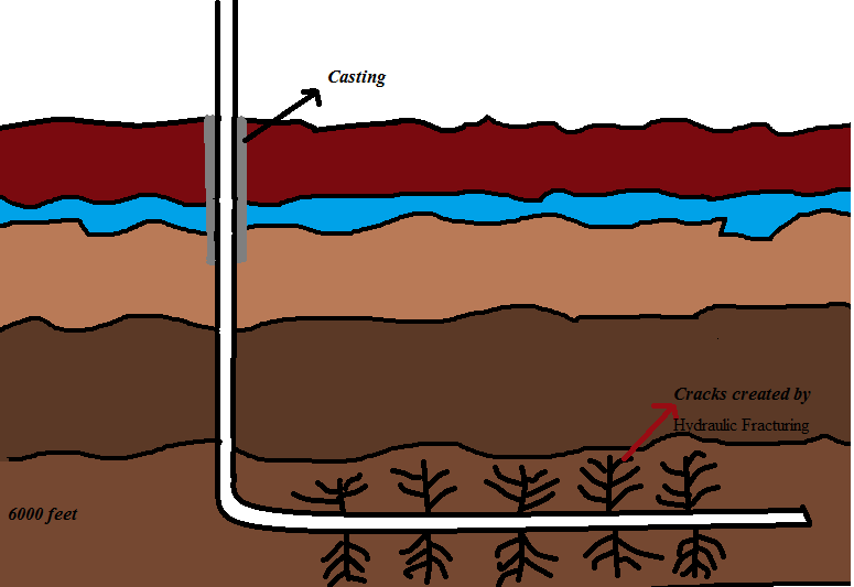 3.பிறகு மீண்டும் வெளியில் எடுக்க பட்ட ஆழ் துளையிடும் சாதனங்களை கொண்டு கீழ் நோக்கி துளையிடுவது தொடரப்படும். இது சில ஆயிரம் அடிகளுக்கு மேலானதாக இருக்கும். களிப்பாறையை நெருங்கியவுடன் வளைவாக துளையிட தொடங்குவர். அது களிப்பாறைக்குள் நன்கு சென்றவுடன் செங்குத்தாக செல்வதை விடுத்து மட்ட வாக்கில் (Horizontal Drilling) துளையிட தொடங்குவர்,