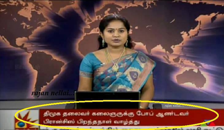 ஆனால் இந்த செய்தி என்னை எழுத வைத்து விட்டது. அவரது பிறந்த நாளுக்கு போப்பாண்டவர் வாழ்த்து தெரிவித்தார் என்று மீண்டும் மீண்டும் கலைஞர் டி.வி யில் செய்தி வெளியிட்டார்கள். போப்பாண்டவர் என்ன இந்திய நாட்டைச் சேர்ந்தவரா? ஏதோ ஒரு லத்தீன் அமெரிக்க நாட்டைச் சேர்ந்தவர். அவருக்கும் இவருக்கும் என்ன சம்பந்தம்? அவர் எதற்கு வாழ்த்து அனுப்ப வேண்டும்.