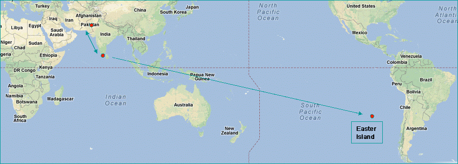 உலகில் படிக்கப்படாத முக்கியமான எழுத்துகளில் முந்து-இலாமித்து எழுத்துகள், சிந்துவெளி எழுத்துகள் ஆகிய இரண்டொடு, உரொங்கோரொங்கோ(Rongorongo)  எழுத்தும் முக்கிய இடம் பிடிக்கின்றது. உரொங்கொரொங்கோ, ஈசுடர் தீவில் (Easter Island)  உருவான எழுத்துமுறை. ஈசுடர் தீவு, தென்னமெரிக்காவுக்கும் ஆத்திரேலியாவிற்கும் இடையே, பசிபிக்குப் பெருங்கடலில் இருக்கின்ற சிறிய தீவாகும். இது சிலி நாட்டின் ஆளுமையில் இருக்கும் சிறப்புப் பகுதியாகும். கீழுள்ள படம் தமிழகத்திற்கும் ஈசுடர் தீவுக்கும் உள்ள தொலைவைக் காட்டுகிறது. தமிழகத்தில் இருந்து பல ஆயிரம் மைல்களுக்கு அப்பால் இருக்கின்ற தீவில் 24 மரப்பலகைகளில், அந்தத் தீவில் வாழ்ந்த தொல்பழங்குடி மக்களின் எழுத்துகள் கண்டுபிடிக்கப் பட்டிருக்கின்றன.