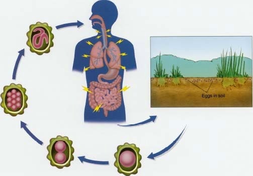சுகாதார முறைப்படி மலங்கழித்து அகற்றாவிட்டால் அந்த மலத்தினால் மண் மாசுறும். மண்ணை அளைந்த கையை நன்கு கழுவாது உணவு உண்டால் அல்லது வாயில் கையை வைத்தால் அவற்றின் முட்டை அல்லது குஞ்சுகள் தொற்றிவிடும்.