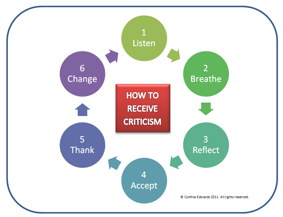 விமர்சனத்தை எவ்வாறு பெற்றுக்கொள்ளலாம் என்பதை கீழுள்ள வரைபு அழகாகக் காட்டுகிறது. இந்த செயற்பாடு (Process)  ஆறு பகுதிகளைக்கொண்டது.