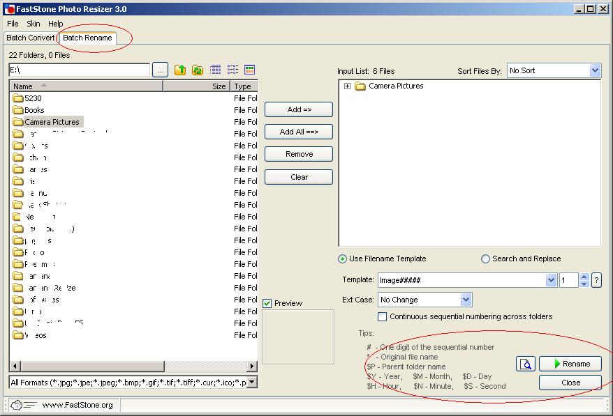 படங்களை மொத்தமாக பெயர் மாற்றும் வசதியும் உள்ளது.