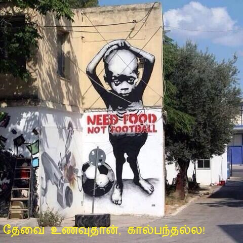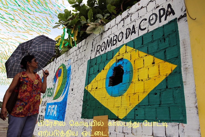 லகக்கோப்பை கால்பந்து போட்டிகள்,  பிரேசிலின் சாவ் பாவ்லோ நகரில் ஜூன் 12-ம் தேதி ஆரம்பிக்க இருக்கும் நிலையில், உலககோப்பைக்கு எதிரான பிரேசில் மக்களின் போராட்டங்களும் தீவிரமடைந்துள்ளன. தாங்கள் வறுமையில் வாடும் பொழுது,  பிரேசில் அரசு கால்பந்து போட்டிகளுக்காக பலகோடிகளை வாரி இறைப்பதை கண்டித்து மக்கள் தெருவிலிறங்கி போராடி வருகிறார்கள்.