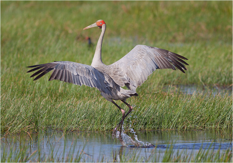 அமைதியாக நின்றுகொண்டிருக்கும் பறவைக்கூட்டம் தங்கள் ஆட்டத்தை ஆரம்பிப்பதே ஒரு அழகுக்காட்சிமுதலில் ஒருபறவை ஒரு புல்லை வாயால் கவ்வி அதைக் காற்றில் பறக்கவிட்டு பிறகுஎக்கிப்பிடிக்கும்தரையிலிருந்து ஒரு  மீட்டரோஅதற்கும் மேலோ உந்தியெழும்பி பாராசூட் போல இறக்கைகளைக் காற்றில் அளைந்தபடி மெதுவாகத் தரையிறங்கும்பிறகு மெல்ல மெல்ல இறக்கைகளை விரித்தும்மடக்கியும்குனிந்தும்வளைந்தும்நடந்தும்தலையை இடவலம்அசைத்தும் என பலவிதமாய் அபிநயிக்கும்.