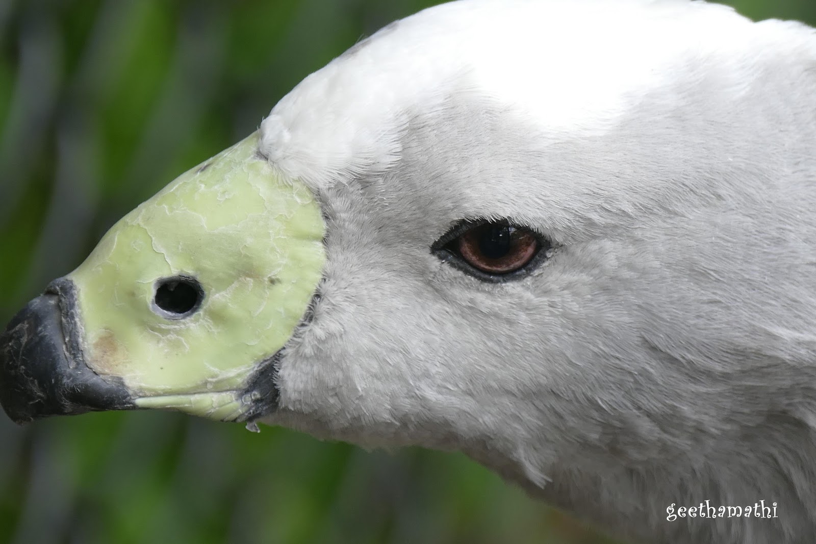 அலகின் நுனியிலிருந்து வால் நுனிவரையிலான இதன் நீளம் 75 செ.மீ முதல் 1 மீவரை இருக்கலாம்எடை மூன்று முதல்ஏழு கிலோ வரையிலும் சிறகுவிரி நீளம் 1.5மீ முதல் 2மீ வரையிலும் இருக்கும்இதன் உடலோடு ஒப்பிடுகையில் தலையின்அளவு சிறியதுவெளிர்சாம்பல் நிற உடல்சிறகுப்பகுதியில் மட்டும் காணப்படும் சற்றே அடர்சாம்பல் நிறப்புள்ளிகள்இளஞ்சிவப்பு நிறக்கால்கள்கருமையான பாதங்கள் மற்றும் அலகின் மேற்புறத்தைப் போர்த்தியிருக்கும் வெளிர்பச்சை நிறதோல்சவ்வு இவற்றைக்கொண்டு இதை எளிதில் அடையாளம் காணமுடியும்பெரும்பாலான சமயம் அமைதியாகஇருந்தாலும் ஆபத்து வருவதாக உணர்ந்தால் கொம்பூதுவது போன்று கர்ணகடூரக் குரலெடுத்து எச்சரிக்கும்