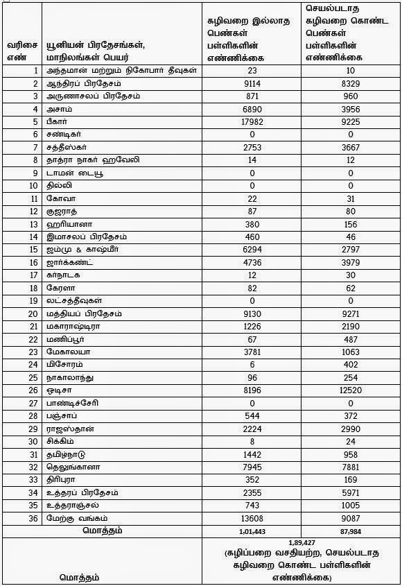 கழிப்பறை வசதி இல்லாத மாணவிகள்:1,89,42,700