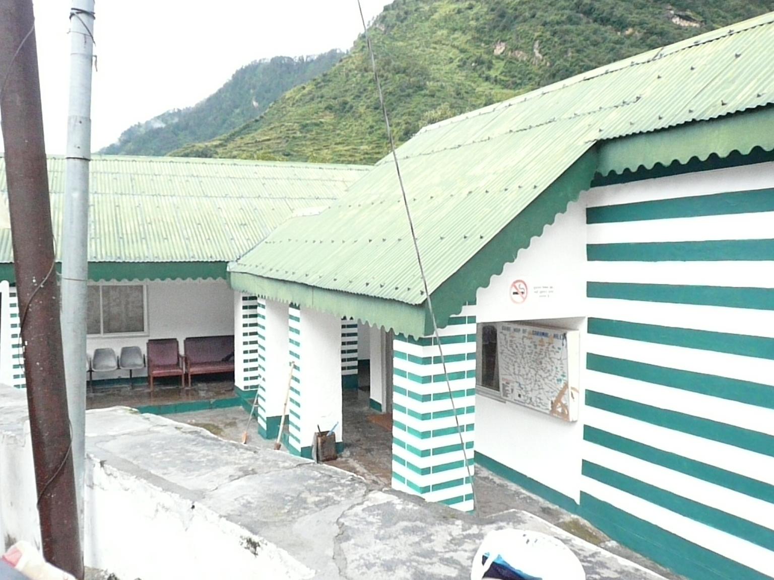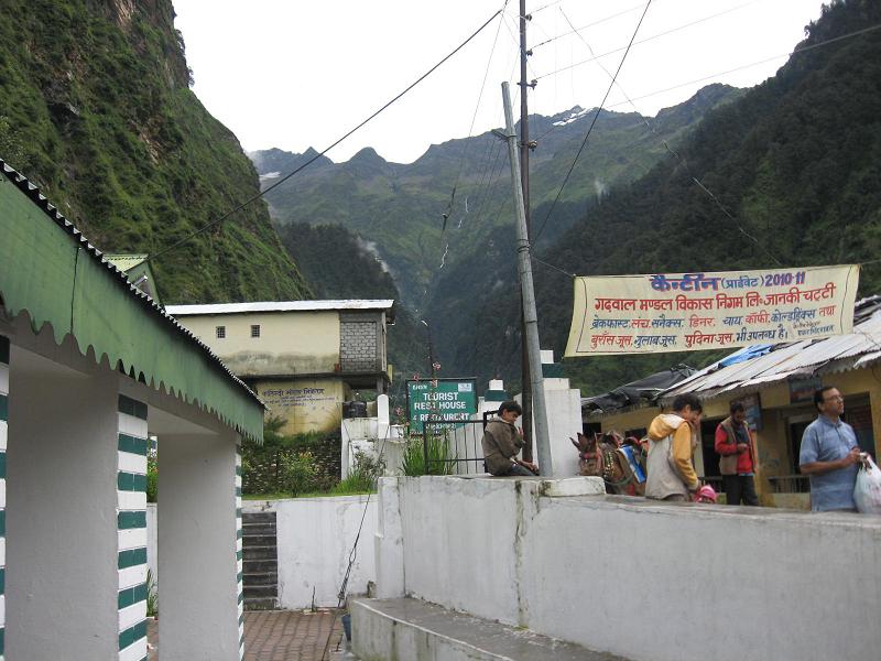 தாங்கள் காண்கின்ற இந்த கட்டிடம்தான் பர்கோட்டில் உள்ள GMVN தங்கும் விடுதி. விடுதியின் வர்ணத்தைப் பாருங்கள் பச்சை நிறம். எங்கிருந்தாலும் நீங்கள் உடனடியாக அடையாளம் கண்டு கொள்ளலாம். அதே சமயம் மழை இவ்வாறு தாறுமாறாக பெய்வதற்கு உலக வெப்பமயமாதல் (Global Warming) ஒரு காரணம் அல்லவா? ஆகவே காடுகளை நாம் காக்க வேண்டும், மரங்களை வெட்டக்கூடாது, சுற்றுசூழலை மாசு படாமல் காக்க வேண்டும் என்பதையும் இது குறிப்படுகின்றது.