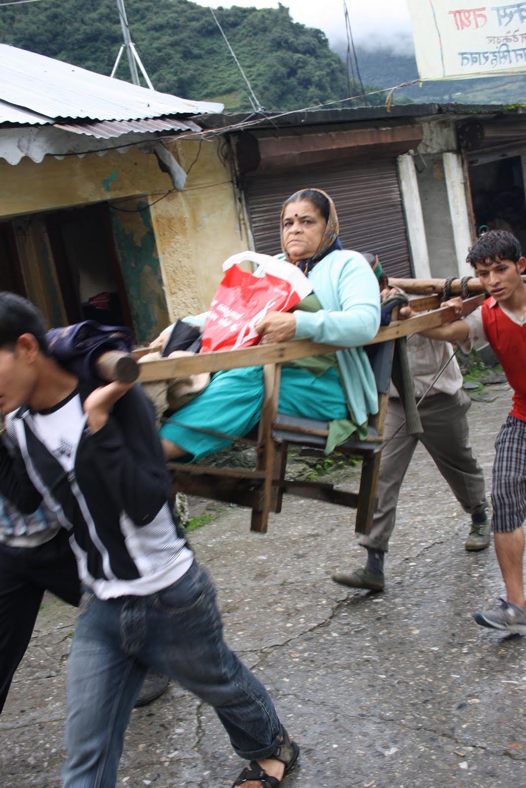 இதை நான்கு பேர் சுமந்து செல்கின்றனர். நான்கு பேரும் ஒருமித்து இராணுவ வீரர்கள் நடை போட்டு செல்வது போல செல்லும் அழகே ஒரு அழகு. அதுவும் அடங்காமல் குதிரைகள் இவர்கள் மேல் மோதுவது போல் வருவதைப் பார்க்கும் எவரும் ஆச்சரியப்படாமல் இருக்க முடியாது. இதல்லாமல் பிட்டு என்னும் கூடையில் சிறு குழந்தைகளை உட்கார வைத்து ஒருவர் தூக்கிச் செல்லும் வசதியும் உள்ளது. அதுவே பெரியவர்களாக இருந்தால் காலை தொங்கவிட்டுக் கொண்டு அமர்ந்து செல்லலாம் இதற்கு கண்டி என்று பெயர். சாமான்களை எடுத்துச்செல்ல கூலிகள் கிட்டுவார்கள். இவர்கள் எல்லாரிடமும் அரசு வழங்கிய அடையாள் அட்டை இருக்கும் அதை வேண்டுமென்றால் வாங்கி பார்த்துக் கொள்ளுங்கள். ஒவ்வோரு ஆண்டும் உத்தராகாண்ட் அரசு இவற்றுக்கான கட்டணம் நிர்ணயம் செய்கின்றது அதிக கிராக்கி இருந்தால் கட்டணம் அதிகமாகும் என்பது போல் யாத்திரிகளின் கூட்டத்தை பொறுத்து விலை மாறுபடுகின்றது. சீசன் சமயத்தில் கட்டணம் அதிகமாக இருக்கும் அதே செப்டெம்பர் அக்டோபர் மாதங்களில் கட்டணம் குறைவாக இருக்கும்.