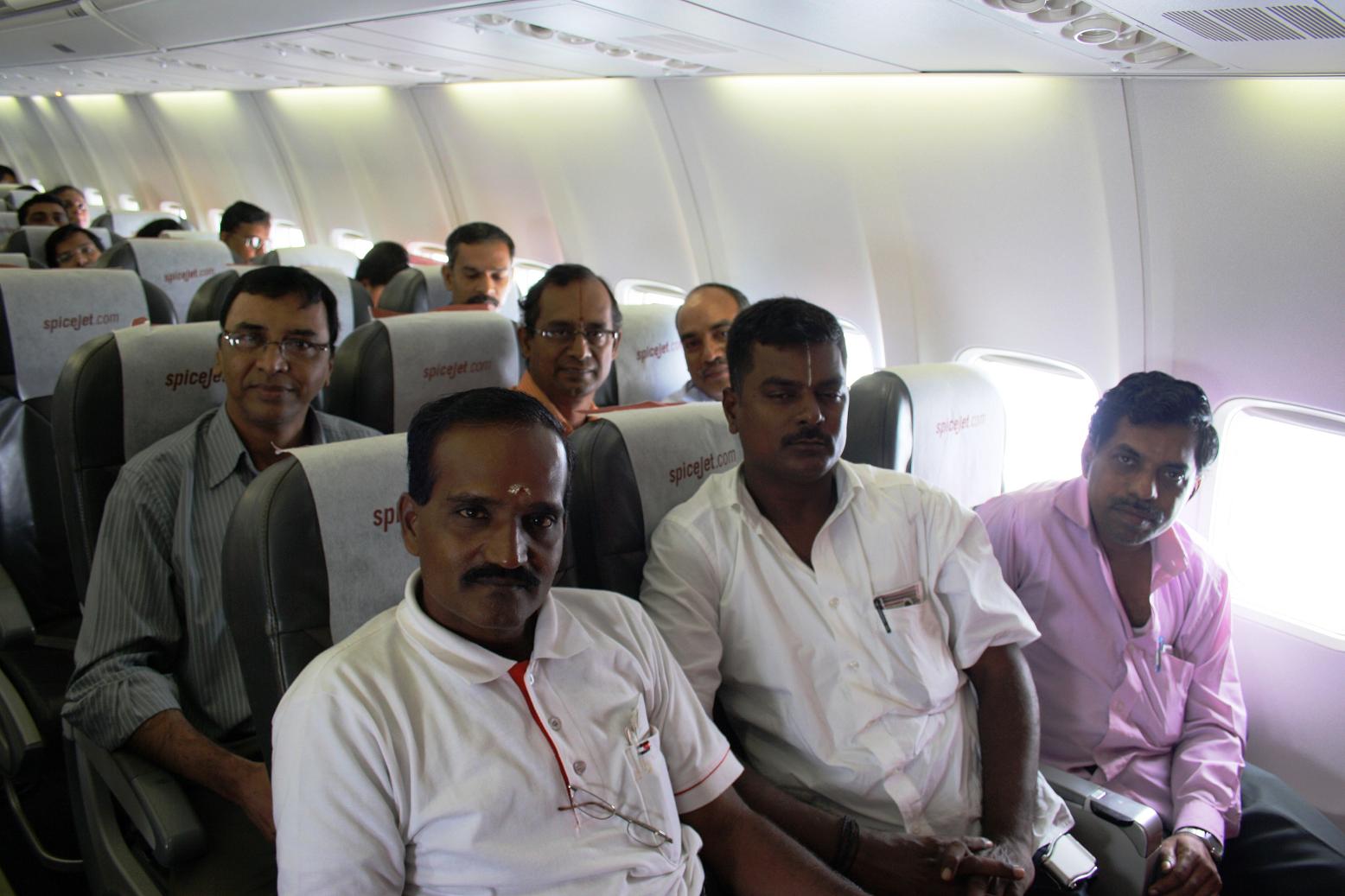 அந்த (05-09-10) நாளும் வந்தது காலை 7.20க்கு விமானம் என்பதால் அடியேன், திரு.இரவி மற்றும் மனோகரன் ஆகிய மூன்று பேரும் விமான நிலையத்தை அடைந்தோம். சிறிது நேரத்தில் அனைவரும் வந்து சேர்ந்தனர். ஒருவரால் மட்டும் வரமுடியவில்லை. விமானம் கிளம்பிவிட்டது, இப்போது அது வானத்தில் உள்ளது அது டெல்லியில் தரை இறங்குவதற்குள் அடியேனுடன் யாத்திரை செய்யும் அன்பர்கள் யார் என்று சிறு அறிமுகம் செய்துவிடுகிறேன், ஏனென்றால் புகைப்படங்களிலும் கட்டுரையிலும் அவர்களை சந்திப்பீர்கள் அல்லவா?