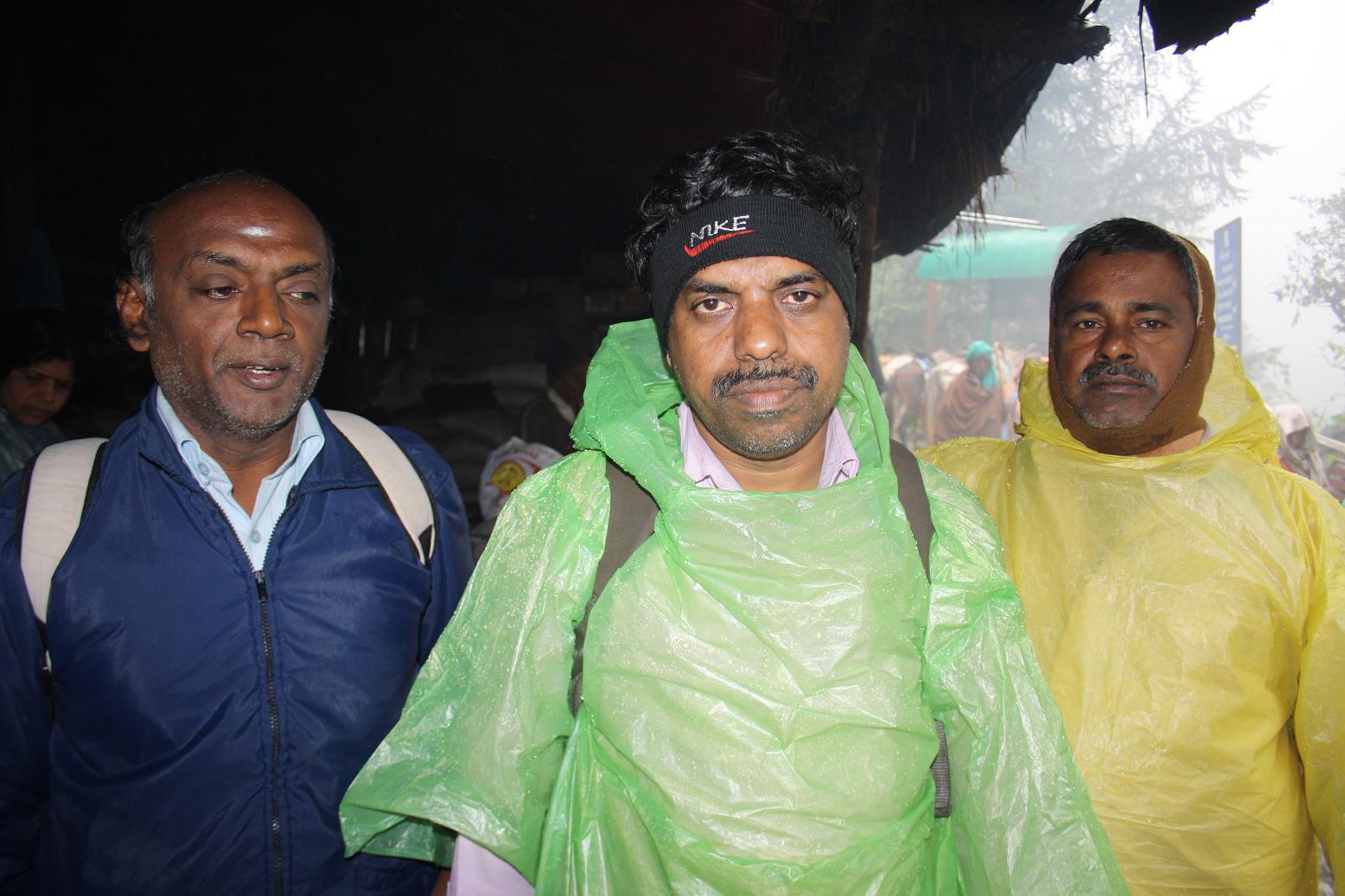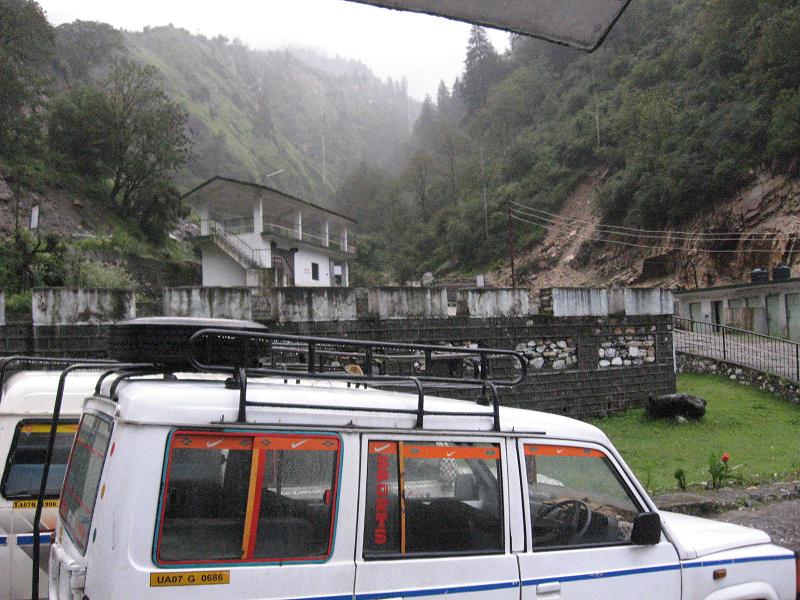 இரவே மழை பெய்ய ஆரம்பித்து விட்டது. காலையில் எழுந்து பார்த்தால் ஒரே பனி மூட்டம் எதிரே இருந்த மலை சிகரங்கள் கண்ணில் படவில்லை. உயர் மட்டங்களில் எவ்வளவு சீக்கிரம் நாம் செல்ல வேண்டிய இடத்திற்கு சென்று விடுகின்றோமோ அவ்வளவு நல்லது. எனவே ஆறு மணிக்கெல்லாம் வெந்நீரிலே குளித்து அனைவரும் தயாராகி விட்டு மழை சிறிது குறைவதற்காக காத்திருந்தோம். மலையேறும் போது அதிக சாமான்களை எடுத்து செல்ல வேண்டாம். சுமார் ஏழு மணி அளவில் மழை கொஞ்சம் மட்டுப்பட்டது வெளிச்சமும் கூடியது ஜீப் மூலம் மழைக்கோட் அணிந்து கொண்டு ஜானகி சட்டி அடைந்தோம்.
