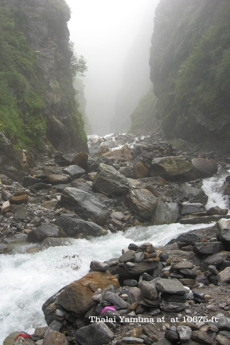 மதிய உணவிற்குப்பின் யமுனோத்திரிக்காக வண்டியில் கிளம்பினோம்.கிளம்பும் போதே ராணா சட்டி அருகில் ஒரு நிலச்சரிவு என்ற செய்தி கிடைத்தது. சிறிது தூரம் சென்றதும் பாதை இரண்டாகப் பிரிந்தது இடப்பக்கம் செல்லும் பாதை யமுனோத்திரிக்கும், வலப்பக்கம் செல்லும் பாதை கங்கோத்திரிக்கும் செல்கின்றது. இடப்புறம் செல்லும் பாதையில் திரும்பி சிறிது கீழே இறங்கி யமுனை நதியை கடந்து பயணம் தொடர்ந்தது. இதற்கப்புறம் பாதை ஒரே எற்றம் யமுனையும் மெலிந்து கொண்டே ஒடிக்கொண்டிருந்தாள் ஏனென்றால் உற்பத்தி ஸ்தானத்திற்கு அருகில் செல்கின்றோம் அல்லவா?