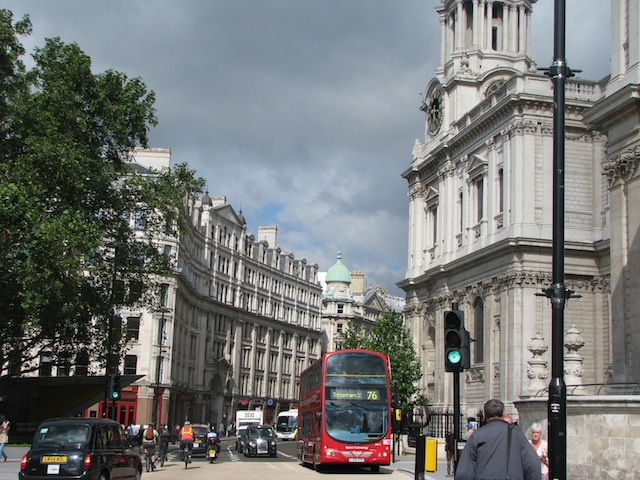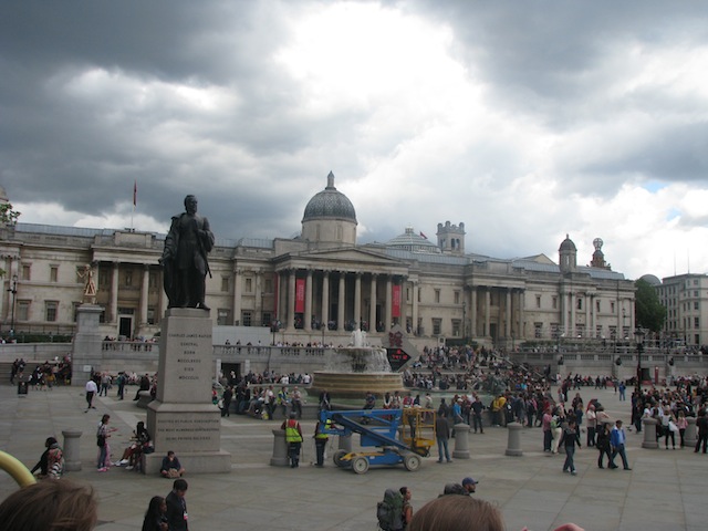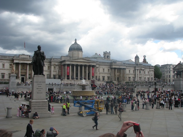 Trafalgar Square ஐ காட்டிக் கொண்டு போனது பஸ், நெப்போலியனின் ஆட்சிக்காலத்தில் பிரெஞ்சு மற்றும் ஸ்பானியப் கடற்படைகளுக்கு எதிராக ஸ்பெயினின் Cape Trafalgar இல் இங்கிலாந்துக் கடற்படையயினர் சந்தித்த வெற்றியை நினைவு கூரும் முகமாக இந்த நாமாகரம் எழுப்பப்பட்டதாம். இன்று அரசியல் மற்றும் பொதுவான நோக்கில் நிகழும் சந்திப்புக்களுக்கான ஒரு மையமாக இது பயன்பட்டு வருகின்றது.