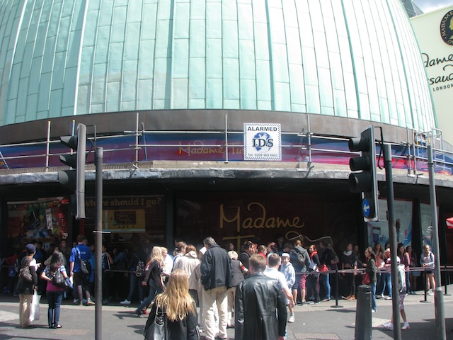 மழை பலமாக அடிக்கத் தொடங்க, இனி பஸ் பிரயாணம் சரிப்பட்டுவராது எங்காவது இறங்குவோம் என்று காத்திருந்தால், லண்டனின் புகழ்பெற்ற மெழுகுச் சிலைகளின் கண்காட்சியகம் Madame Tussauds ஐ அண்மிக்கிறோம் என்ற அறிவிப்பு வர, மெல்ல இறங்கி Madame Tussauds திசையில் நடந்தேன். அங்கே போனால் ஒரு திருவிழாக் கூட்டம் உள்ளே நுழையக் காத்திருந்தது. சரி, நுழைவுச் சீட்டை எடுப்போம் என்று போனால் அங்கே இன்னும் இரண்டு மடங்கு கூட்டம். சரி நானும் கூட்டத்தில் ஐக்கியமாவோம் என்று நினைத்து வரிசையில் நின்றேன். நாற்பத்தைந்து நிமிடம் கடந்தும் பாதி வழி தானாம், இன்னும் பாதி வழி இருக்கு என்றார்கள். பாதி வழியிலேயே சில மெழுகுச் சிலைகளைக் கண்ட திருப்தியோடு, இது ஆவுறதில்லை என்று சொல்லிக் கொண்டே, உள்ளே இருந்து வெளியேறினேன். Madame Tussauds இற்கு வருவதென்றால் முன்கூட்டியே இணைய மூலம் நுழைவுச் சீட்டைப் பதிவு செய்வதுதான் உசிதம் போல.