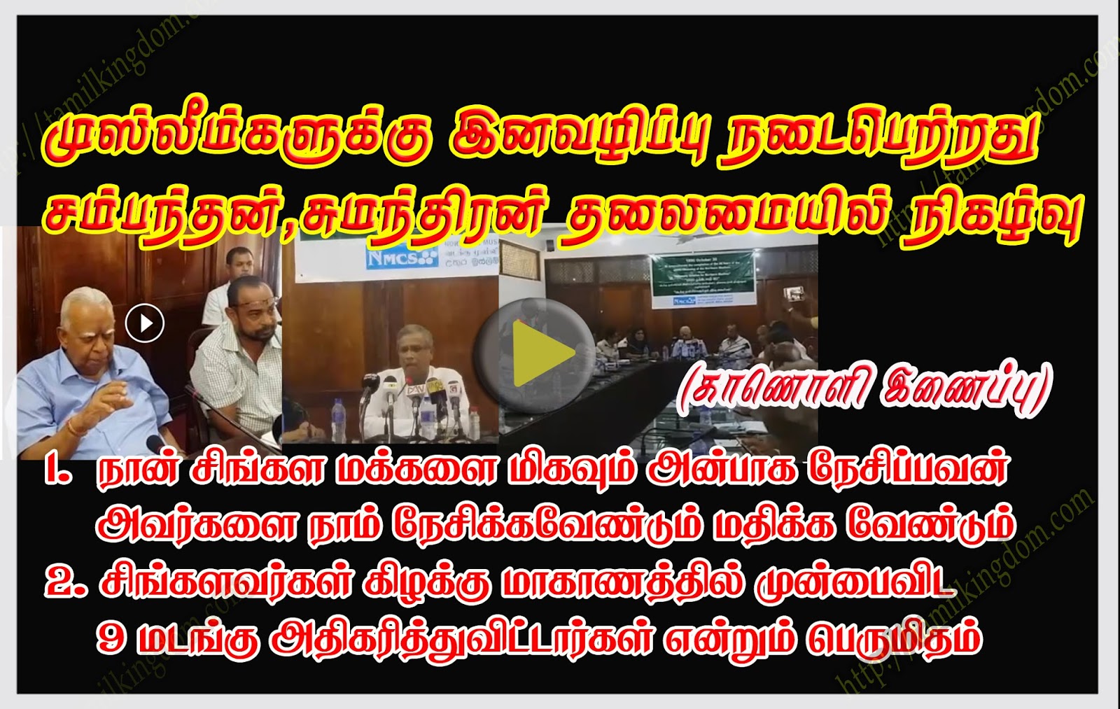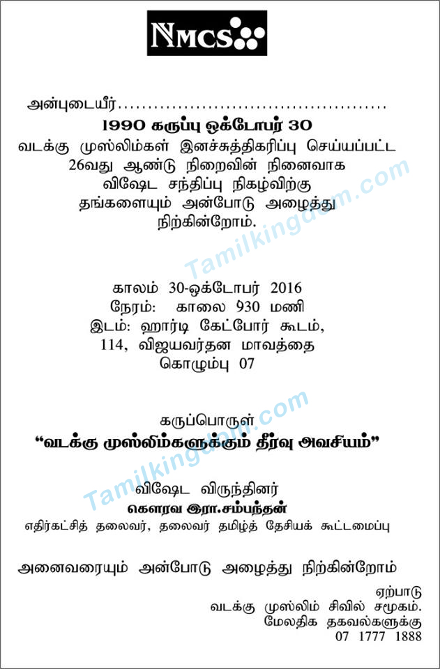தொடர்பில் இன்று கொழும்பில் முஸ்லீம் சமூகத்தினரால் ஒழுங்குசெய்யப்பட்ட புலிகள் இனவழிப்பு செய்தார்கள் என்றும் அதன் நினைவுநாள் நிகழ்வின் சிறப்பு வருந்தினராக சம்பந்தன் மற்றும் சுமந்திரன் பங்குபற்றலோடு நடைபெற்று முடிந்துள்ளது.