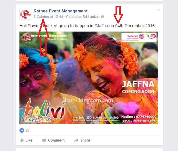 அந்த வகையிலேயே இம்முறை அதன் கோரமுகத்தின் உச்சத்தை தொடும் வகையில் ஏற்பாடு செய்யப்பட்டுள்ள வடஇந்தியர்களின் கோலி பண்டிகை நிகழ்வானது யாழ்ப்பாணத்தில் நடாத்துவதற்கு ஒழுங்கு செய்யப்பட்டுள்ளதோடு அதனை மாவீரர் நாளான நவம்பர் -27 இல் செய்வதற்கும் மிகப்பெரிய சதி இடம்பெற்றுவருவது தொடர்பாக தமிழ்க்கிங்டொத்தின் கவனத்திற்கு கொண்டுவரப்பட்டுள்ளது.