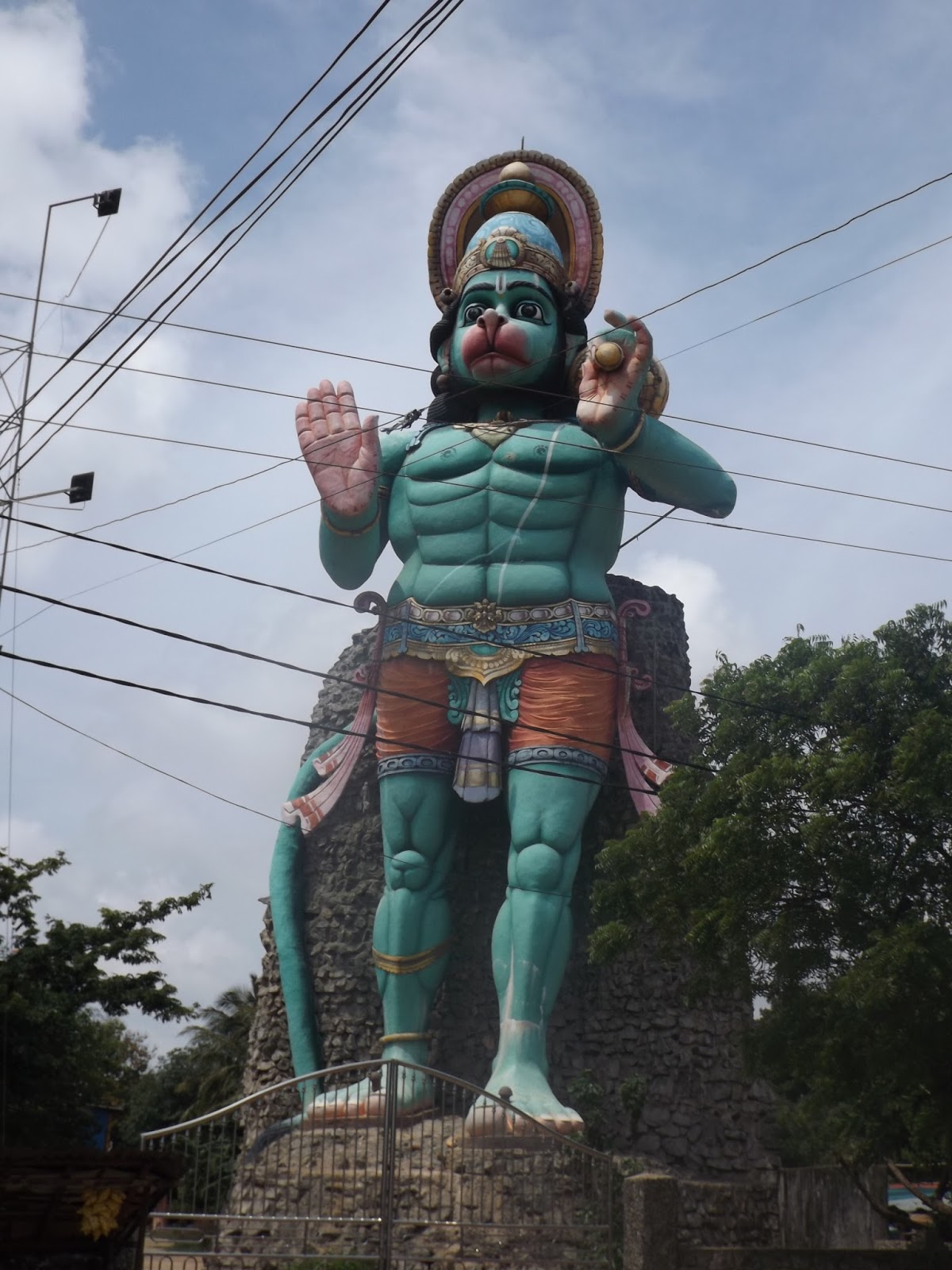 அதாவது, இலங்கையில் இராமனின் ஆக்கிரமிப்பு இராணுவம் இருந்த இடத்தை நினைவுகூர்வதற்காக, அந்த இடத்தில் ஆஞ்சநேயர் சிலை வைத்திருக்கிறார்கள்! அப்படியானால் எதற்காக வடக்கே மருதனாமடத்தில் ஆஞ்சநேயர் சிலை வைத்தார்கள்?