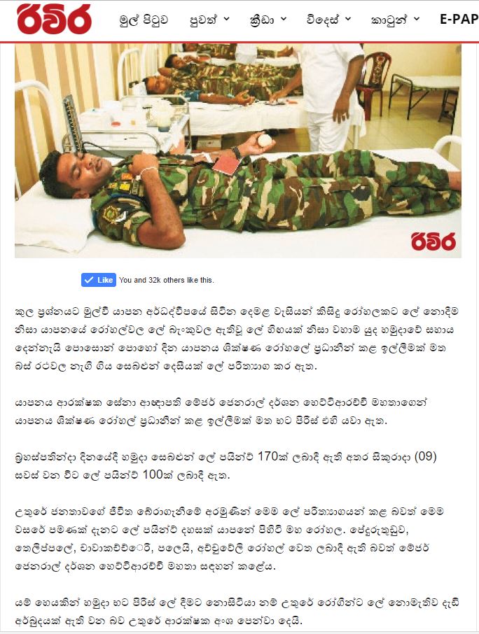 கடந்த 10ஆம் திகதி வெளியான "ரிவிர" பத்திரிகையில் வெளிவந்த செய்தி இது.