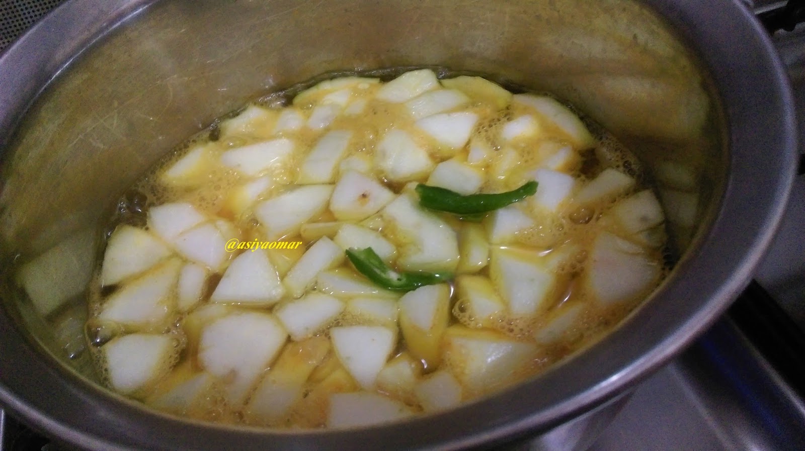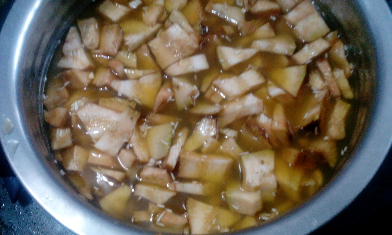 மஞ்சள் தூள், கீறிய மிளகாய் 1  ,தேவைக்கு உப்பு, ஒரு கப் தண்ணீர் சேர்த்து வேக வைக்கவும்.