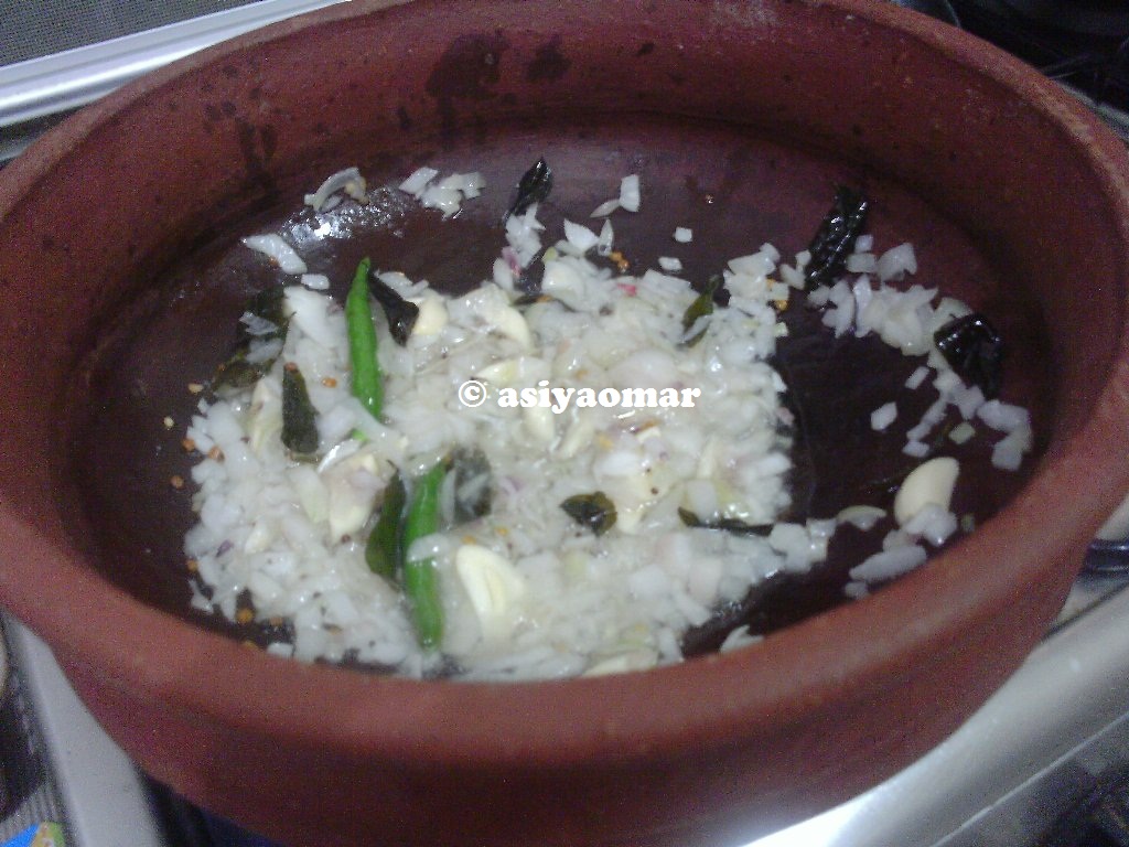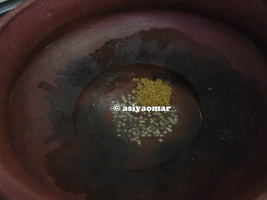 மண் சட்டி அல்லது மீன் சமைக்கும் பாத்திரத்தில் எண்ணெய் விட்டு,சூடு வந்தவுடன்  கடுகு,உளுத்தம் பருப்பு,வெந்தயம் சேர்க்கவும்.