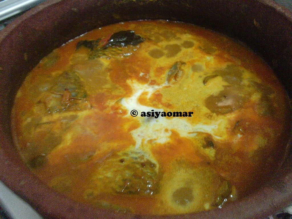 பின்பு மீன் துண்டுகளைச் சேர்க்கவும்.நன்கு கொதித்து மீன் வெந்து வரும்.தேங்காய்ப்பால் அல்லது தேங்காய் அரைத்ததைச் சேர்க்கவும்.தேவைக்கு தண்ணீர் சேர்க்கவும்.குழம்பு கெட்டித்தனமை உங்கள் விருப்பம்.அடுப்பைக் குறைத்து விடவும் சிம்மில் ஐந்து நிமிடம் வைத்து அடுப்பை அணைக்கவும்.விரும்பினால் நறுக்கிய மல்லி இலை சிறிது தூவலாம்.மூடி வைக்கவும்.