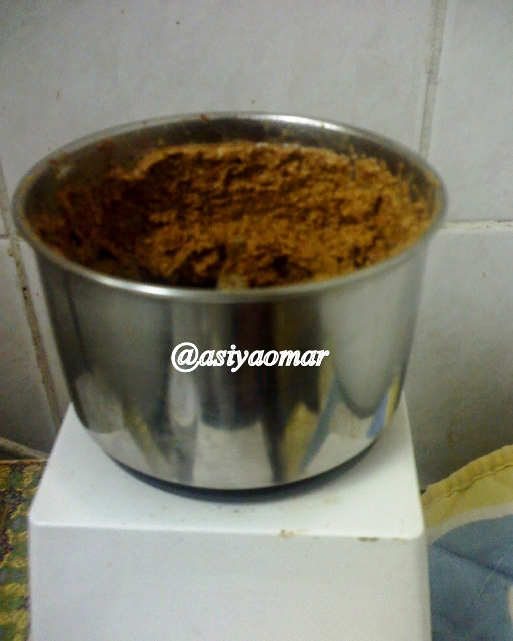 வறுத்த பொருட்களை எடுத்து ஆற வைத்து மிக்ஸியில் போட்டு பொடி செய்துக் கொள்ளவும். அதில் தண்ணீர் சேர்த்து விழுதாக அரைத்துக் கொள்ளவும்.