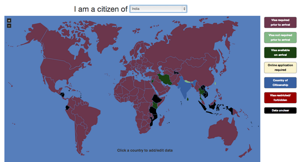 அதாவது இந்த தளத்தில் நுழைந்ததுமே ,பயனாளி எந்த நாட்டின் குடிமகன் என புரிந்து கொண்டு அந்த நாட்டுக்கான விசா நடைமுறையை வரைபடமாக காட்டுகிறது. உதாரணத்திற்கு இந்தியாவில் இருந்து பயன்படுத்தும் போது ,இந்தியாவுக்கான இடம் குடியிருக்கும் நாடு என காட்டப்படுகிறது. இந்தியர்களுக்கு மற்ற நாடுகள் எப்படி விசா தருகின்றன என்பது வண்ணங்களாக காட்டப்படுகிறது. ஆக, பயனாளி வேறு நாட்டில் இருந்து அணுகும் போது அவரது நாட்டுக்கான விசா வரைபடம் தோன்றும். அற்புதம் தான் இல்லையா?