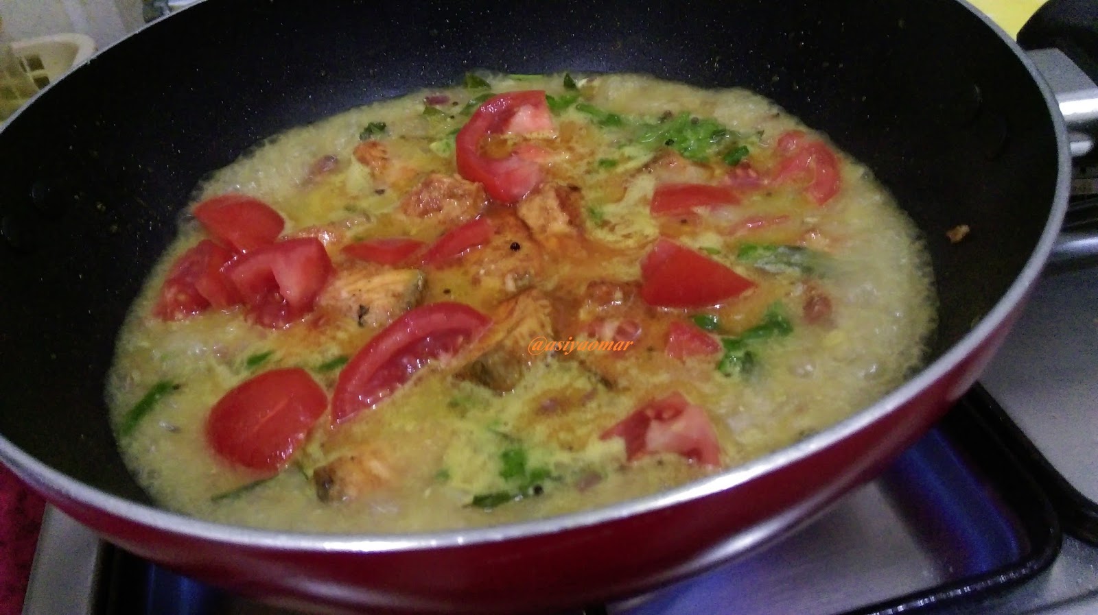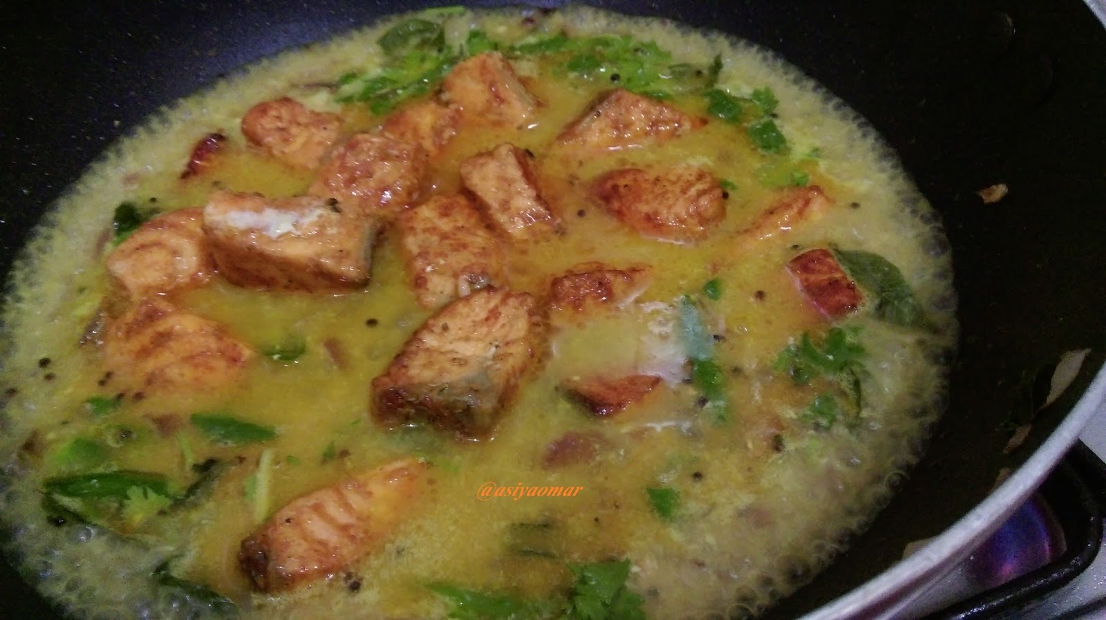 மீன் தேங்காய்ப்பால் சேர்த்த பொருட்களோடு சேர்த்து நன்கு கொதி வரட்டும்.மிளகுத்தூள் காரம் தேவைப்பட்டால் சேர்க்கவும்.