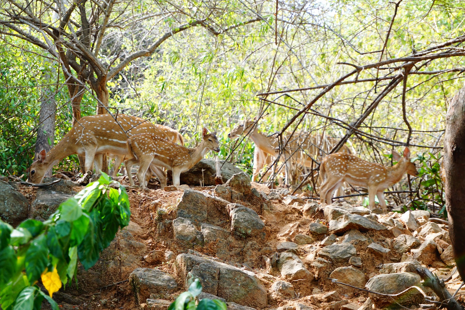 திருகோணமலையில் காட்டு மான்களை அதிகம் காணமுடியும். அவை வளர்ப்பு மான்களாக கோயில்களிலும், கடற்படைத் தளங்களிலும், பொலிஸ் நிலைய வளாகங்களிலும் மிரட்சியான கண்கள் கொண்டு உலாவித் திரிகின்றன. ஒன்று இரண்டு என்றுதான் நினைத்திருந்தோம். ஆனால் அவற்றின் எண்ணிக்கை கிட்டத்தட்ட 40-60 வரை இருக்கின்றது. இவற்றை வேட்டையாடுவதோ தாக்குவதோ பாரதூரமான குற்றமாகக் கருதப்படுகிறது. இவை நேரடியான இராணுவ மேற்பார்வைக்கும் கோயில் நிர்வாகத்தின் பார்வைக்கும் உட்பட்டு உள்ளது. சில மான்களை அருகில் அழைத்ததும் விர்ரென்று தாவிக் குதித்து ஓடுகின்றன. அதில் மிக இளைய மான்கள் சில  அருகில் வந்து கையை மணந்து பார்த்தும் செல்லும் வெள்ளந்தியான மனம் கொண்டவையாகவும் உள்ளன. அப்போது தேவதேவன் கூறிய ஒரு கவிதைவசனம்தான் ஞாபகம் வந்தது. "அமைதி என்பது வந்தமர்ந்த பறைவையினால் அசையும் கிளையோ"  இங்கு பறவை என்பதை மான் என்றும் கிளை என்பதை மனம் என்றும் பொருத்திப் பார்த்து ஒருவிதமான லௌகீக சூழலுக்குள் ஆட்படுத்திக் கொண்டிருந்தேன். உன்னதமான மனம் என்பது என்னவென்று அதன் தீண்டலில்தான் உணரலாம். சண்டையிட்டு நீண்ட காலத்துக்குப் பிறகு சந்தித்த காதலனின் கண்களை நேரடியாகப் பார்த்துப் பேசமுடியாத தவறிழைத்த காதலி போல அந்த மானின் மிரட்சியான பார்வைக் கோணம் நெளிந்தது.