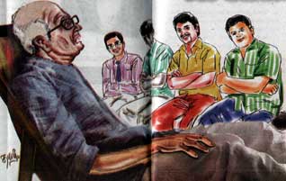 “ஸார்…நாங்க நாலு பேரும் உங்க பழைய மாணவர்கள். தாம்பரம் எலிமெண்ட்ரி ஸ்கூல்ல உங்ககிட்ட படிச்சோம். நான் ரகுராம், இவன் சுரேஷ், இவன் டேனியல்ராஜ், இவன் அருள்செல்வன்…!”