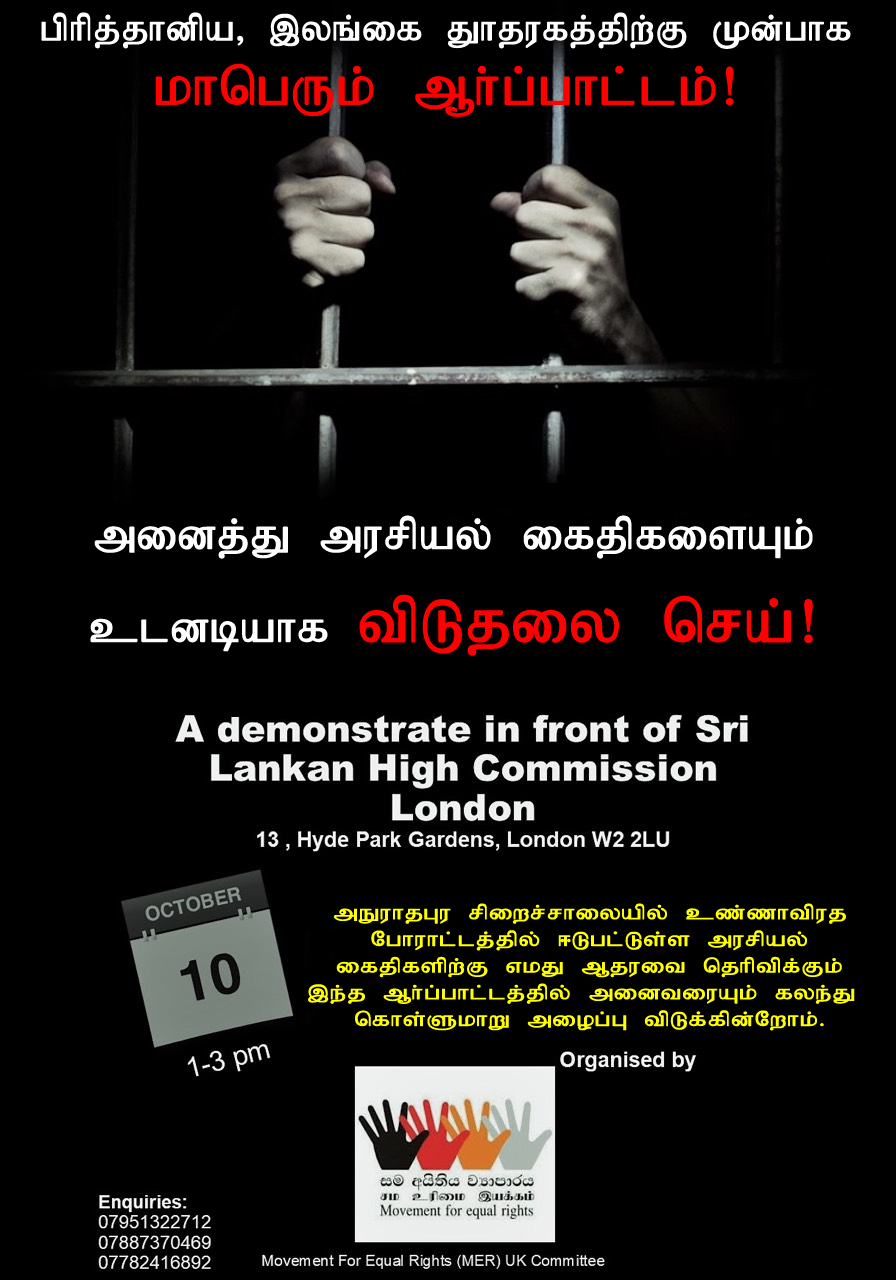 இந்த இனவாத கறைபடிந்த அரசியல்தான் சமூகத்தை முப்பது வருட யுத்தத்தில் தள்ளியது. அதற்கு மீண்டும் இடமளிப்பது என்பது இன்னொரு யுத்தத்திற்கு வழி சமைப்பதாக இருக்கும். ஆகவே, இந்த இனவாத திட்டத்தை தோற்கடித்து சகல அரசியல் கைதிகளையும் விடுதலை செய்து கொள்ள அனைவரும் ஒன்று சேர வேண்டும். அதற்கு பரவலான மக்கள் சக்தியை மற்றும் வலுவான மக்கள் கருத்தை கட்டியெழுப்ப வேண்டும். அரசியல் கைதிகள் தொடர்பான பிரச்சினையை வடக்கு பிரச்சினையோடு சுருக்கி விடாமல் தெற்கு சமூகத்தை, விசேடமாக சிங்கள மக்களை இந்த கோசத்தின் கீழ் அணி திரளச் செய்ய வேண்டும். அதற்காகவே சம உரிமை இயக்கம் தோற்றி நிற்கின்றது. சம உரிமை இயக்கம் எடுக்கும் நடவடிக்கைகள் மற்றும் ஏனைய அமைப்புகளுடன் சேர்ந்து எடுக்கும் நடவடிக்கைகளின் அடிப்படை அதுதான். அதற்காக இணையுமாறு சகல முற்போக்கு பிரிவுகளிடமும் வேண்டிக் கொள்கின்றோம்.
