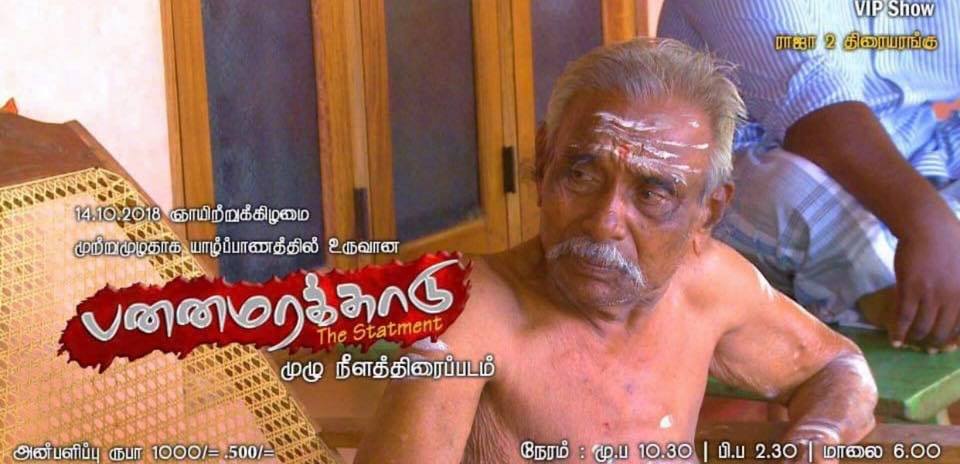 யாழ்ப்பாணத்தில் ராஜா தியேட்டரில் ஒக்டோபர் மாதம் 14 ஆம் திகதி காலை 10.30, முற்பகல் 2.30 மற்றும் மாலை 6.30 மணி காட்சிகளாகத் திரையிடப்படுகின்றது.