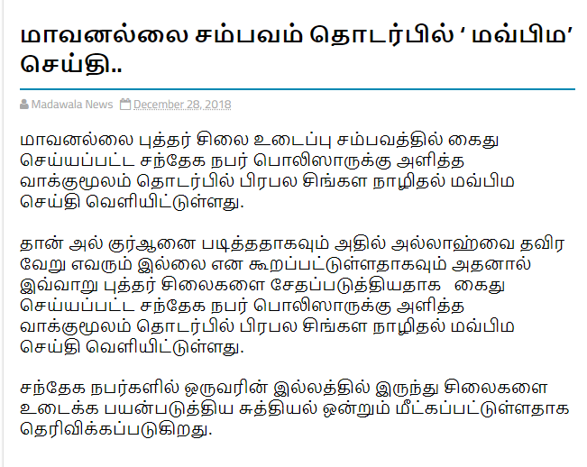 மாவனல்லை புத்தர் சிலைகள் உடைப்பும், ஆதாரமுள்ள மற்றும் ஆதாரமற்ற செய்திகளும்?