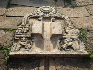 அதுமட்டுமன்றி ஏறத்தாழ 9ஆம் நூற்றாண்டில் கட்டப்பட்டதாகக் கருதப்படும் மன்னர்கள் மலசலம் கழிக்க உருவாக்கப்பட்டிருந்த கற்களில் இருக்கும் சிற்ப வேலைப்பாடுகளிலும் சிங்கத்தைக் காண முடிகிறது.