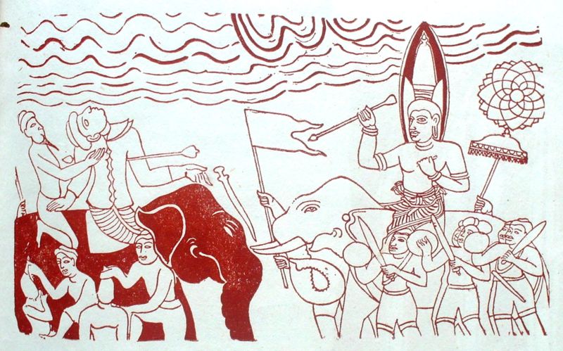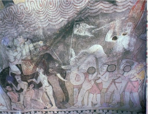 எல்லாளன் - துட்டகைமுனு போரை சித்திரிக்கும் 19ஆம் நூற்றாண்டுக்குரிய தம்புள்ளை குகை ஓவியம்