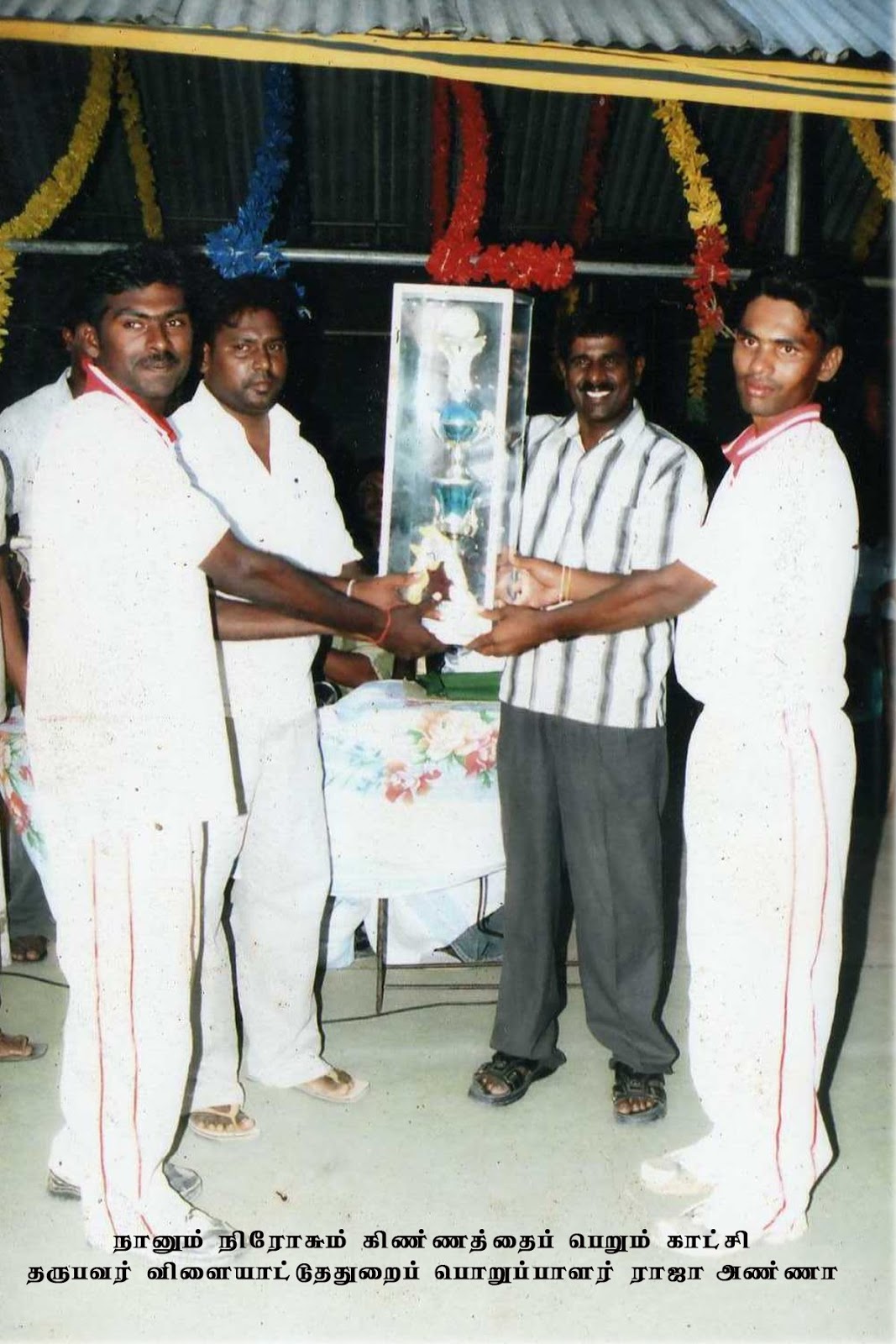 அந்த போட்டியில் நான் எடுத்த 4 கடுமையான பிடிகளுக்காகவும். இறுதி விக்கேட்டான சதீசை மட்டும் வைத்துக் கொண்டு செந்தா அண்ணா வீசிய போட்டியின் இறுதிப் பந்தில் 6 ஓட்டத்தைப் பெற்று அணியை வெற்றி பெற வைத்ததற்காகவும் சிறந்த ஆட்டக்காரராகவும் தெரிவு செய்யப்பட்டேன்.