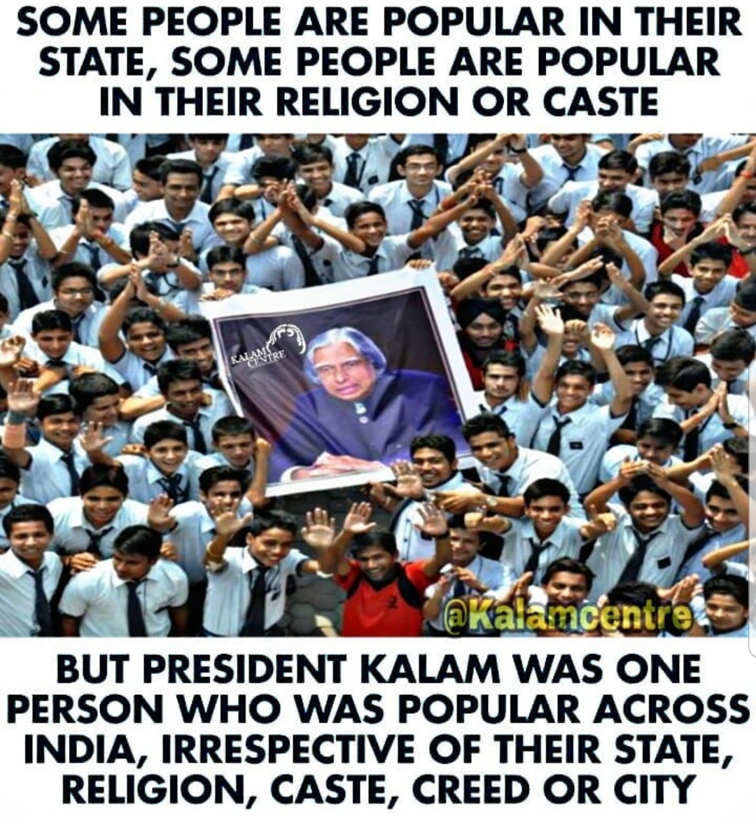 ‘கனவு காணுங்கள்! ஆனால் கனவு என்பது நீ தூக்கத்தில் காண்பது அல்ல, உன்னைத் தூங்கவிடாமல் செய்வதே கனவு.’ இன்றைய இளைஞர்களை இவரை விட அதிகமாக நம்பியவர்கள் கிடையாது. இளைஞர் சக்தியின் மூலம் இந்தியா வல்லரசாக முடியும் என்பதை கனவாகக் கொண்டிருந்தார். ஆனால் நம் இளைஞர்களின் செயல்களை அவர் இன்று கண்டிருந்தால் நிச்சயம் வேதனையடைந்திருப்பார். சினிமா நடிகர், நடிகைகளை முன்மாதிரியாகக் கொண்டு அவர்களுக்காக தங்களது வாழ்நாளின் நிமிடங்களைச் செலவழிப்பது வெட்கப்பட வேண்டியவொன்று.