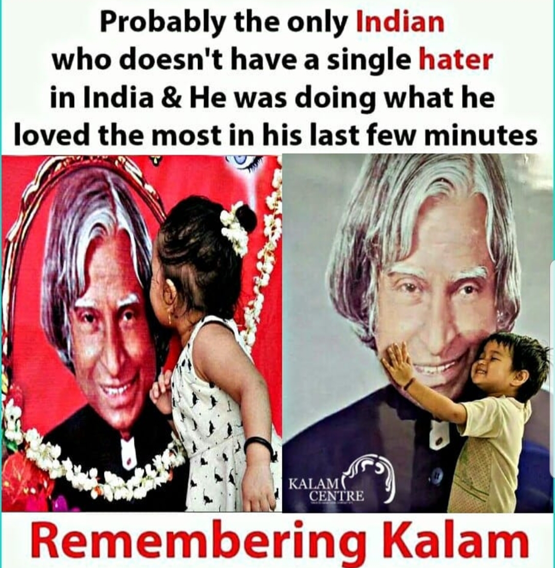 ஜுலை 27, இன்று முன்னாள் இந்தியக் குடியரசுத் தலைவர் அப்துல் கலாமின் நினைவு நாள் அனுசரிக்கப்படுகிறது.