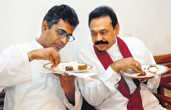 Eating milk rice with President Mahinda Rajapakse